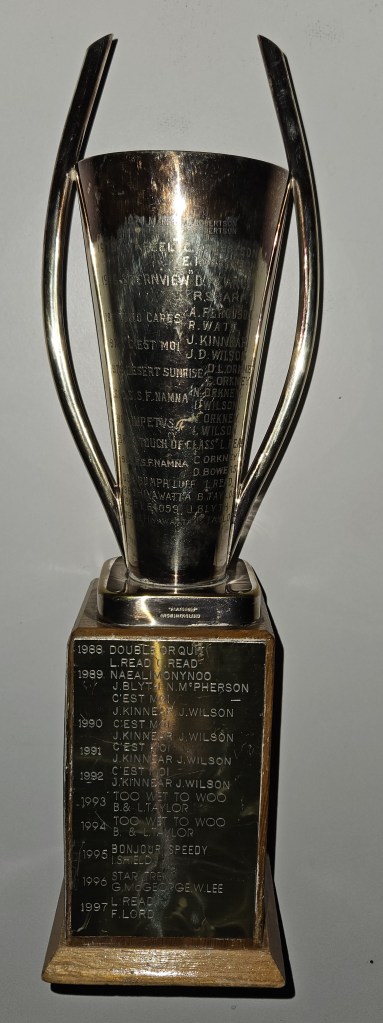 George replaced the original trophy with the present trophy designed and made by Donald Aitken in 2001 and in keeping with the original objectives eligibility is restricted to juniors and novices. ↩︎ - Presented by Carol and Claire in memory of Len Read, a great regular member of the club that turned up regardless of the conditions and long term club Secretary. Len won the 2015 club championship with Frances Lord before passing.